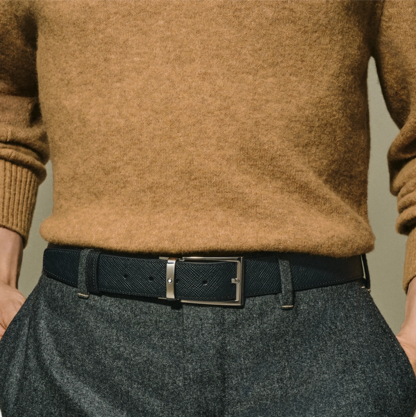 Двухсторонний мужской ремень Montblanc: кожа черного и коричневого цвета 35 мм от магазина премиальных ручек Premium Pens в Химках.