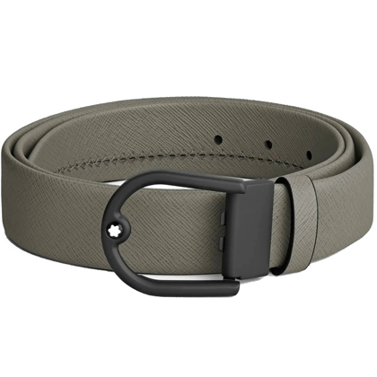 Кожаный ремень 35 мм из кожи серого цвета, пряжка в форме подковы от магазина премиальных ручек Premium Pens в Химках.